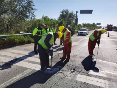 為確保津汕高速外委路面病害處置工程安全施工,10月19日,津汕分公司安全科來到天津方向K685+650注漿施工現(xiàn)場,對施工現(xiàn)場進行監(jiān)督檢查。查看了工程進度、防范措施、安全制度等情況,指出務(wù)必要將安全放在首位,要將安全工作做實做細,提高作業(yè)人員的安全防范意識,制定并落實好應(yīng)急方案,科學(xué)合理組織施工,有序推進工程進度,確保工程安全、保質(zhì)、如期完成。