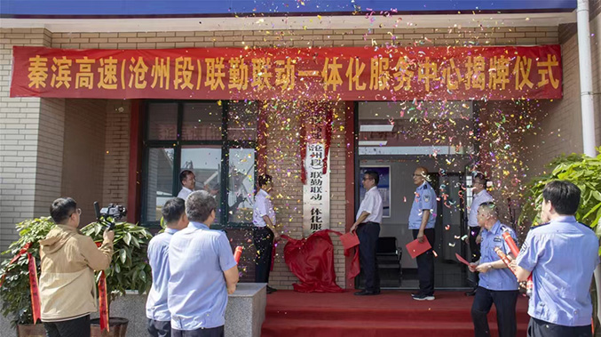 2023年6月16日上午9時(shí)18分,河北省首家“一路六方”高速公路聯(lián)勤聯(lián)動(dòng)“一體化服務(wù)中心”在秦濱高速(滄州段)正式揭牌成立。