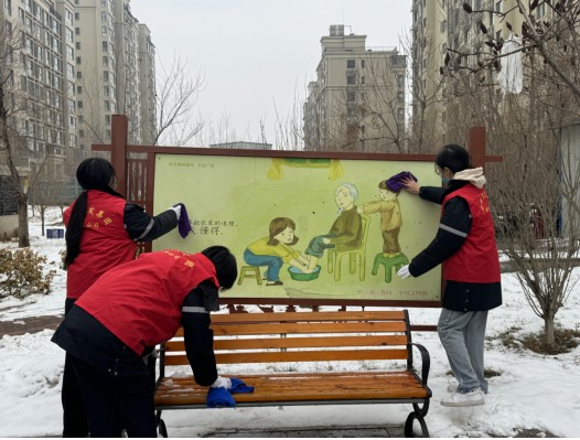 活動中,志愿者們拿上工具,分組深入到轄區(qū)角角落落,清理轄區(qū)的環(huán)境衛(wèi)生死角。同時當(dāng)天恰逢2024年的第一場雪,志愿者們也帶上除雪工具積極掃雪。