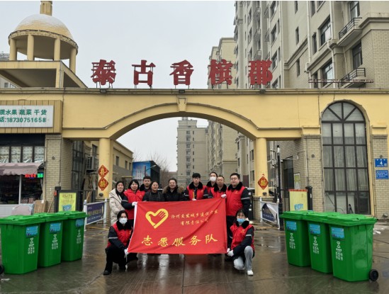城鄉(xiāng)公司領(lǐng)導(dǎo)了解情況后高度重視,第一時間為泰古香檳郡小區(qū)社區(qū)購置了六個生活大垃圾桶,并于1月17日,組織干部職工志愿者10余人走進泰古香檳郡小區(qū),開展“訪民情 辦實事 求實效”志愿服務(wù)活動。