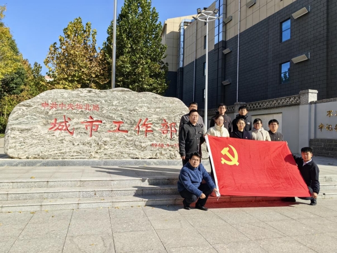 寒風呼嘯,落葉飄飄。初冬天寒擋不住交發(fā)項管公司黨總支黨員們向革命先輩學習的熱情。11月9日,為深入學習貫徹習近平新時代中國特色社會主義思想,項管公司黨總支組織帶領十余名黨員和部分團員來到中共中央華北局城市工作部舊址進行紅色教育。